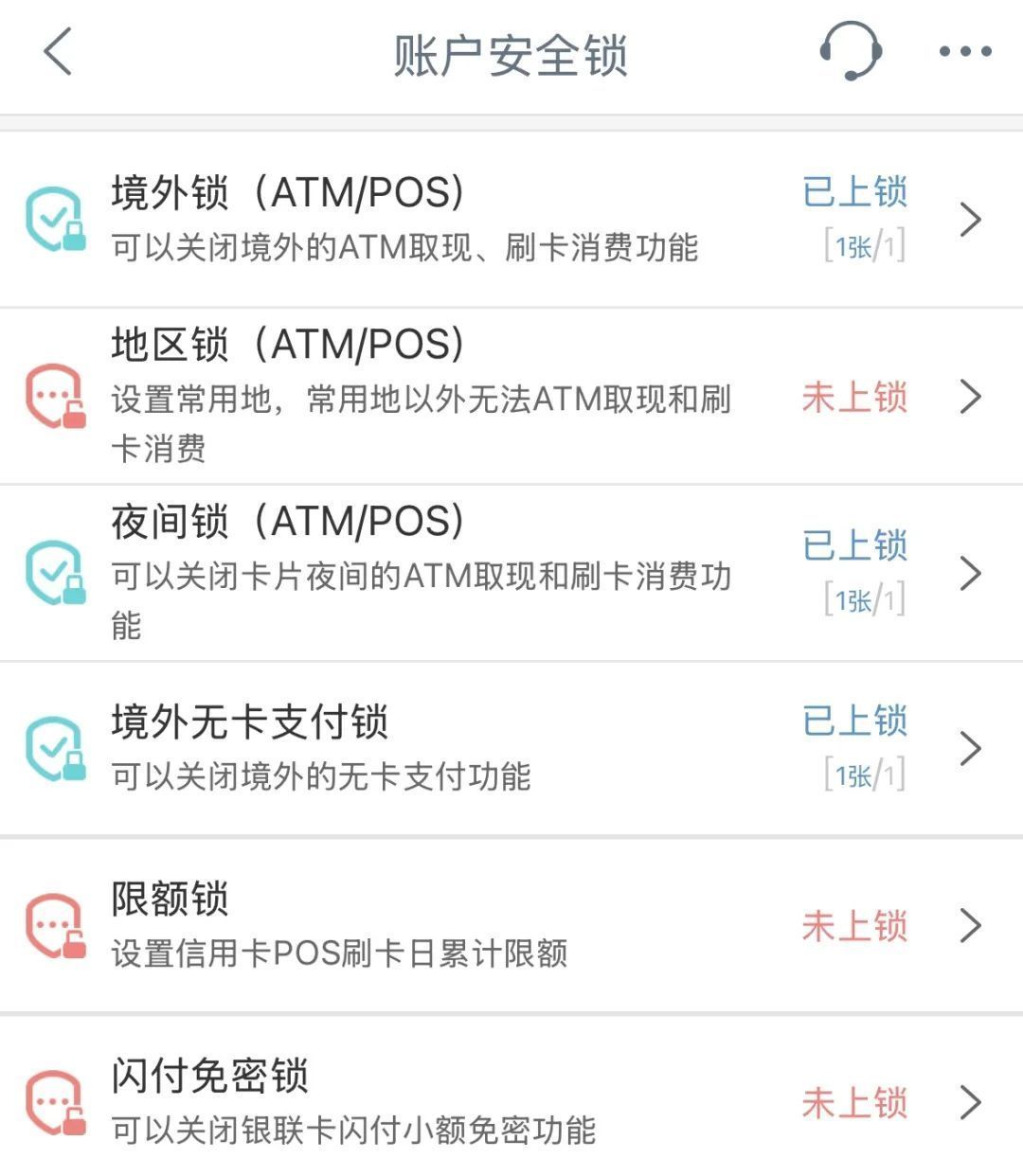 各家银行App均有银行账户锁,其中包含境外安全锁、夜间安全锁,以及异地账户使用安全锁。可根据需求上锁,避免资金损失。